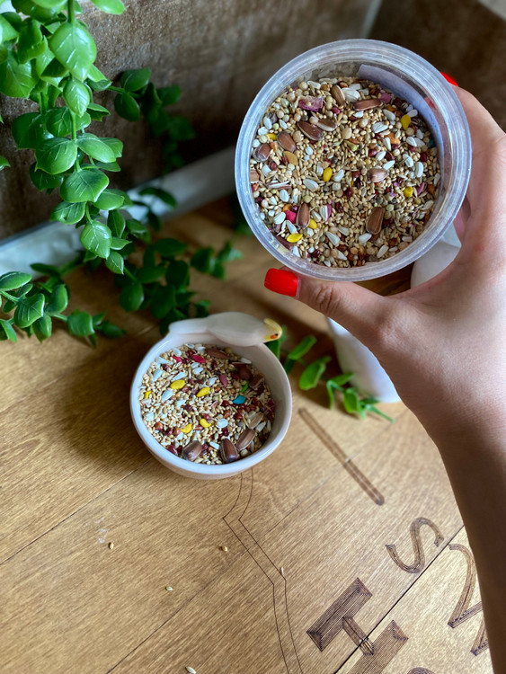 تمام متریالها خارجی و ضدعفونیشده برای سلامت پرندگان ✔ عطر و بوی خوشایند که طوطیها را به خوردن تشویق میکند ✔ قیمت مناسب و کیفیت بالا ✔ مناسب برای تمامی پرندگان زینتی و عروس هلندی، مرغ عشق، طوطی برزیلی و