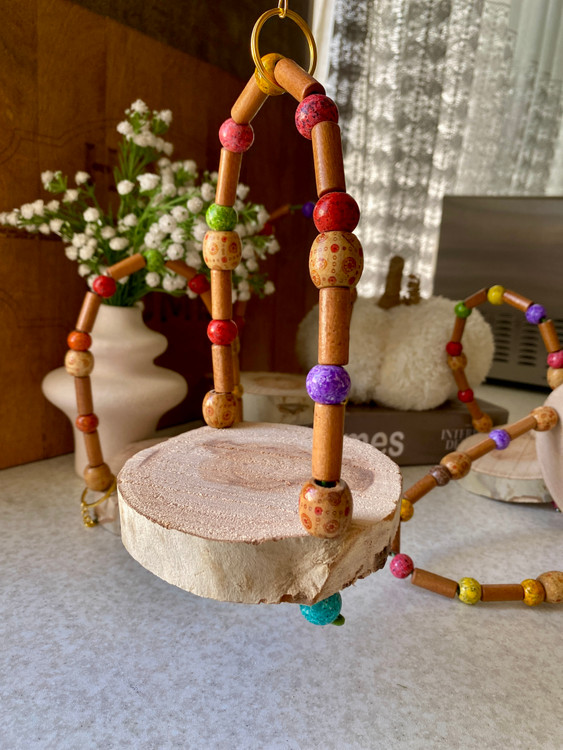 ساخته شده از چوب طبیعی و مقاوم • دارای نشیمن راحت و ثابت برای استراحت پرندگان • مناسب برای سرگرمی، تاب خوردن و فعالیت روزانه • کمک به کاهش استرس و افزایش نشاط پرنده • مناسب برای طوطیها و پرندگان کوچک و متوسط • طراحی زیبا و جذاب برای قفس: یک عدد در هر بسته